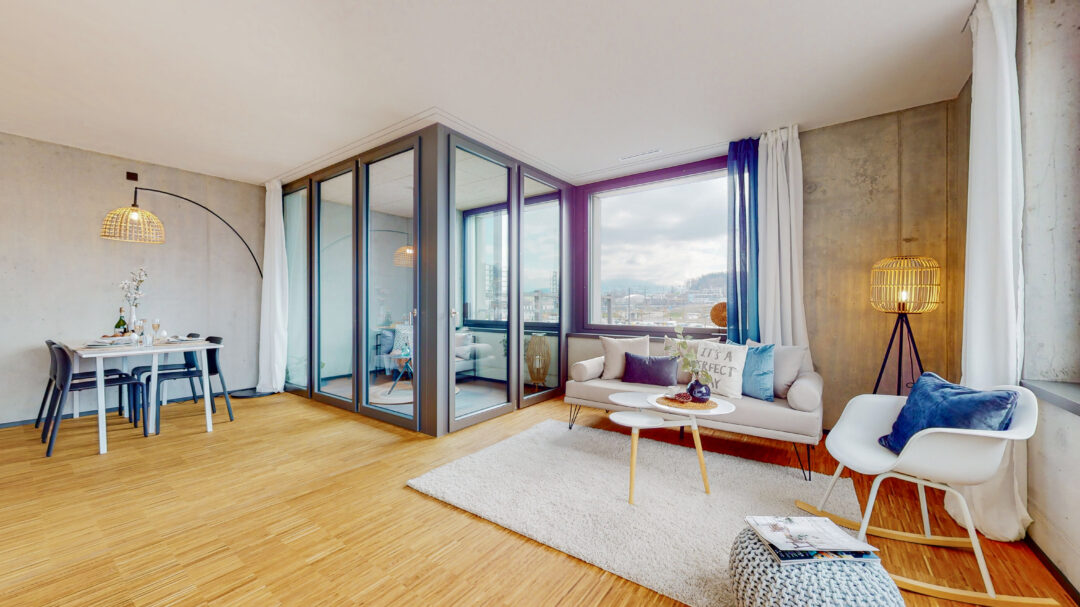 4VIERTEL bietet 192 Wohnungen von 1.5 bis 5.5 Zimmer, Atelier und Lofts in verschiedenen attraktiven Wohnlagen: Im Hochhaus am Seetalplatz, entlang der Kleinen Emme oder neben der Viscosistadt. Sämtliche Wohnungen bestechen durch hochwertige Ausstattung, durchdachte Raumaufteilung sowie ihren unverwechselbaren Charakter und schaffen damit beste Voraussetzungen zum Wohlfühlen. Und geht es doch einmal woanders hin, so profitieren Mieter von einem grosszügigen Mobilitätsangebot, das vom Carsharing bis hin zum subventionierten ÖV-Abo reicht.